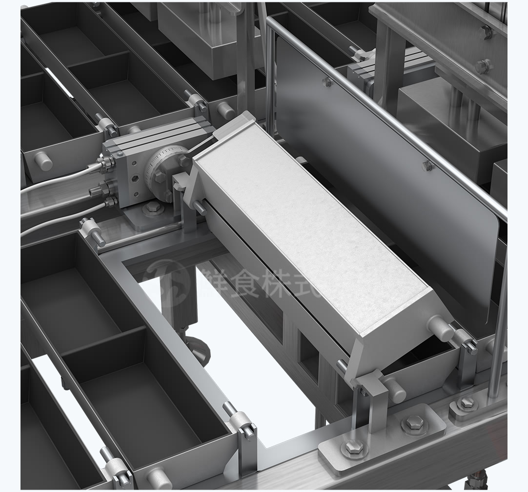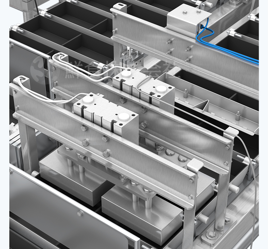 压紧系统:蛋饼翻转完成之后,将蛋饼压实合成一体,使产品结构更加紧实,防止熟制之后的玉子烧内部出现分层现象。
