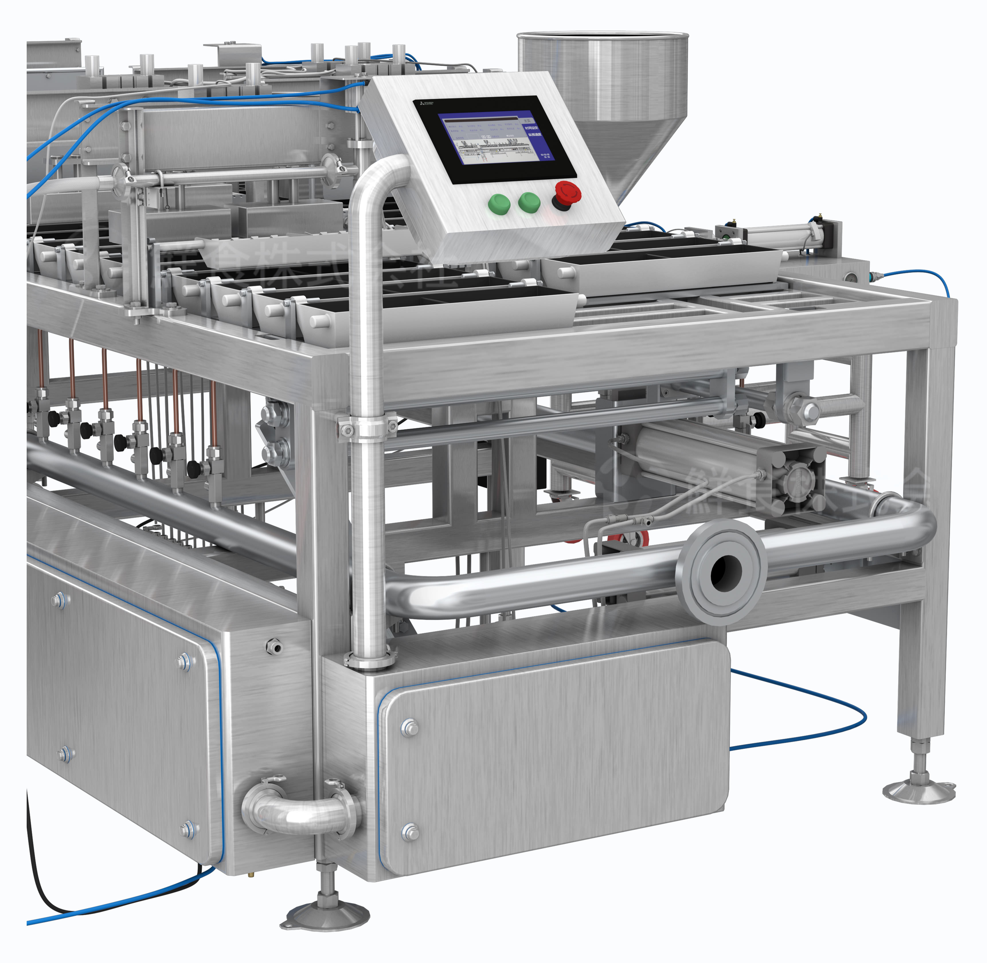 玉子烧机防护等级为IP65-IP69K,符合欧盟食品安全生产标准。管路采用无缝焊接技术,便于拆解清洗,亦可直接冲刷清洗,避免细菌残留,提高生产卫生条件。